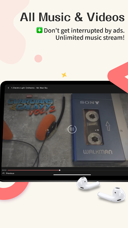 - Create a party room to share and listen together with your friends