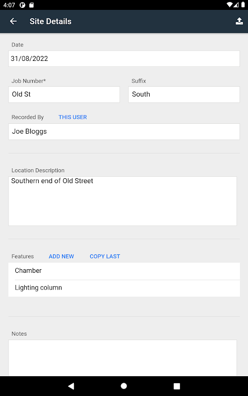 The PAS128 Site Reconnaissance app lets you make a note of any potential features on a site visit that could form part of a PAS128 Quality Level C report.