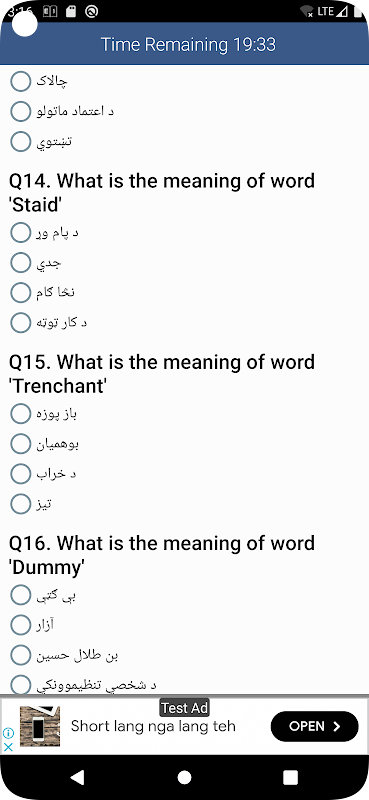Word Quiz: Our quiz have 24 level, You have to complete one by one. For wrong answer you will be asked again on the end of the level.