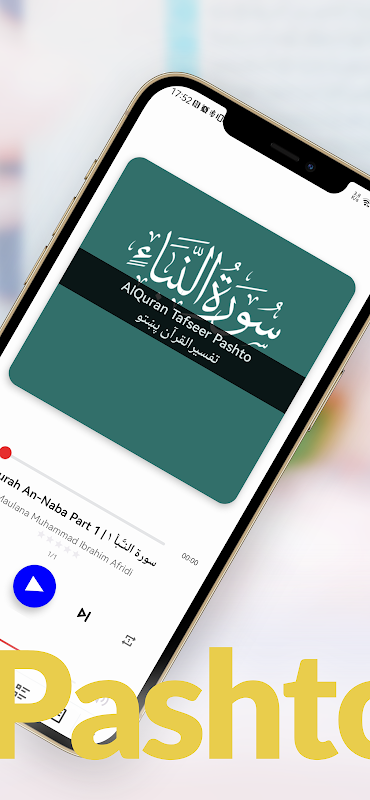 • Play AlQuran Tafseer Pashto (تفسیرالقرآن پښتو) on lock screen.