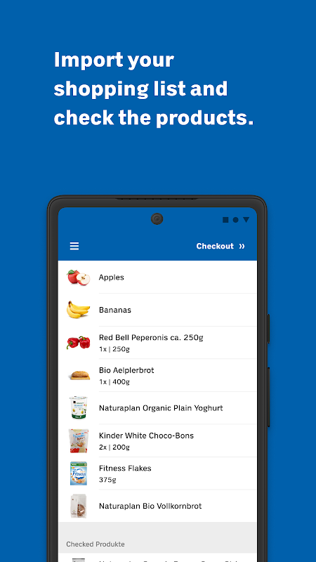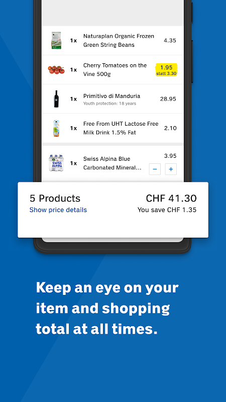 You don’t have to place your shopping on the conveyor belt. Only the completion code on your smartphone is scanned at the checkout or self-checkout.