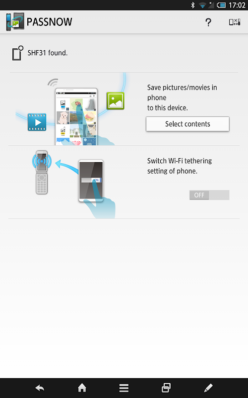 ・Share a web page displayed on your mobile phone with your tablet.