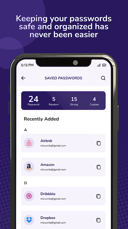 Password Manager & Generator was designed with maximum privacy protection in mind, and it offers advanced features for everyone who values the security of their data. This mobile app helps users to create strong and secure passwords for online accounts. The app also allows users to save their settings and see the strength of their passwords, helping them to create and manage secure passwords with ease.