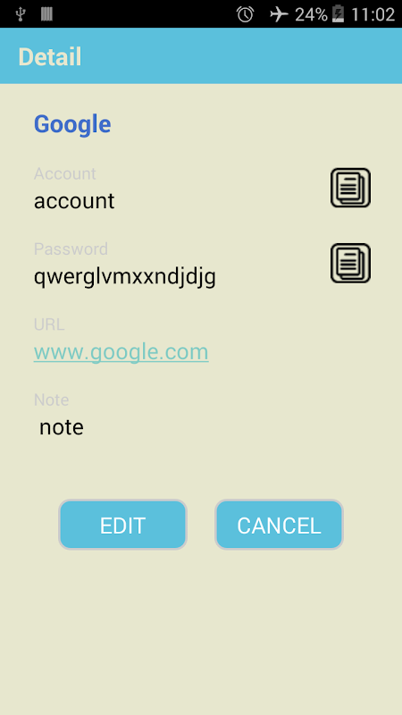 7.save account, password, URL and note