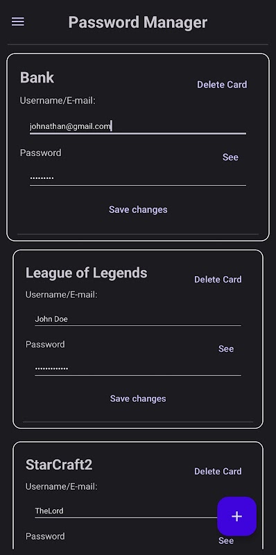 Passwords Manager is an app that allows you to write down important and valuable personal information aka Usernames, E-mails and Passwords.