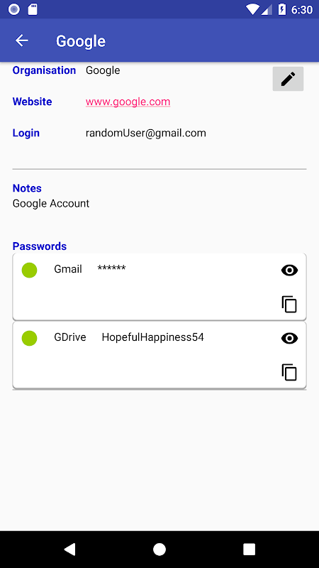 ★ store multiple passwords for an organization in one area, e.g. if you have several work passwords then you can store them all under one name,