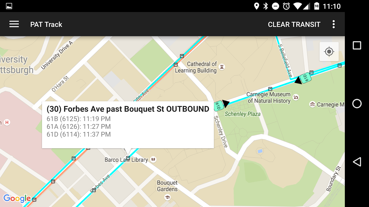 Ever been frustrated at Pittsburgh's bus schedule? Ever get frustrated that the buses never come on time? Why not just plan your transportation around Pittsburgh, PA, based on realtime tracking!