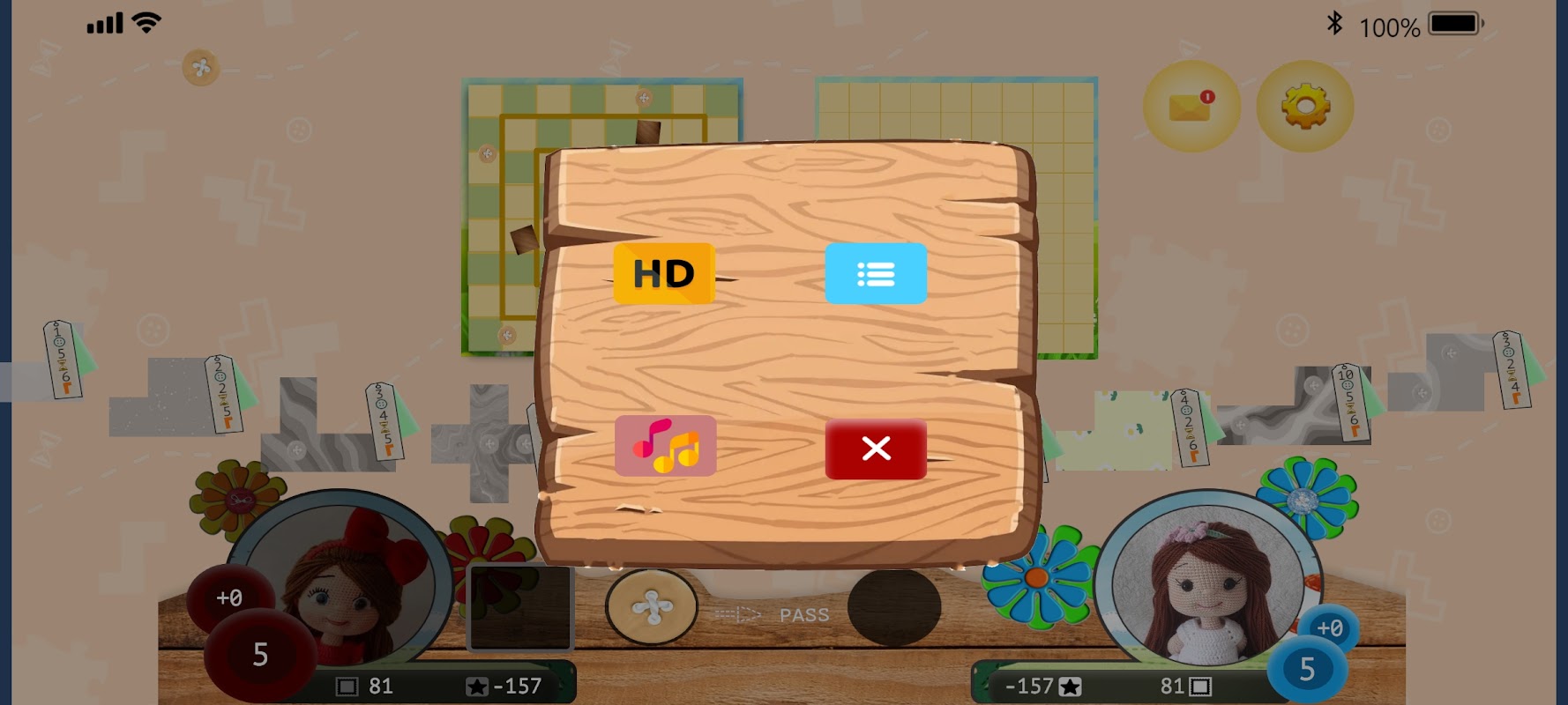 When a player takes an action that moves his time token to the central square of the time track, he takes one final button income from the bank. Once both players are in the center, the game ends and scoring takes place. Each player scores one point per button in his possession, then loses two points for each empty square on his game board. Scores can be negative. The player with the most points wins.
