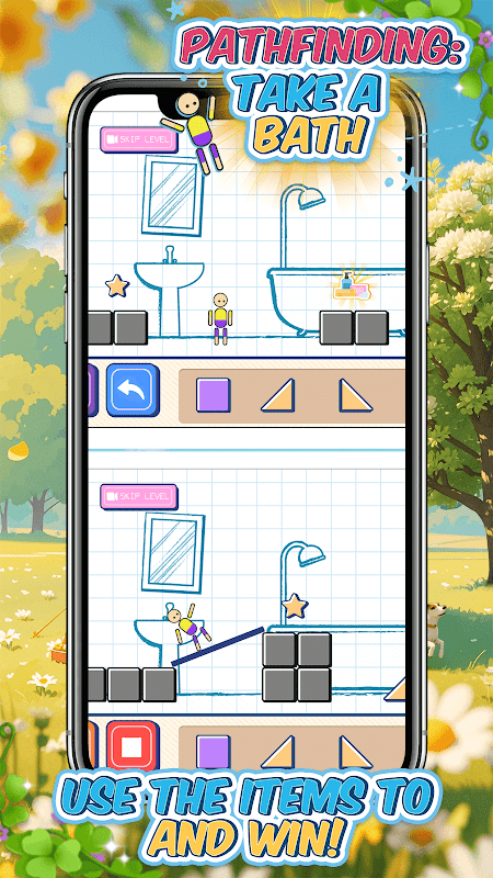 "Help Bob the bath lover collect his shower essentials while avoiding tricky obstacles!Use clever props to navigate through each bathroom challenge and reach your relaxing bath.