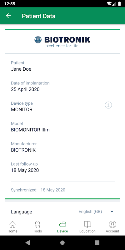 The Patient App from BIOTRONIK SE & Co. KG supports patients in their daily lives with a BIOTRONIK cardiac device. The app is intended for patients who want to be more active in their therapy and take responsibility for their own health.