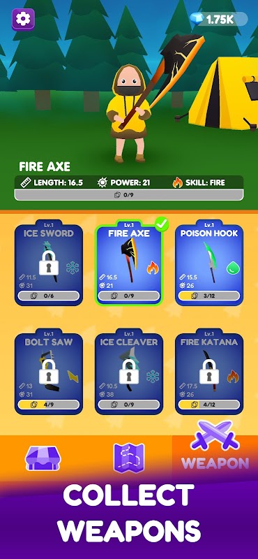 Collect and upgrade over 20 unique weapons, featuring elemental powers such as fire, poison, and ice. Progress through the game and unlock new and powerful cards to add to your collection. Customize your weapon to suit your playstyle and fine-tune it in the weapon store to create the ultimate weapon.