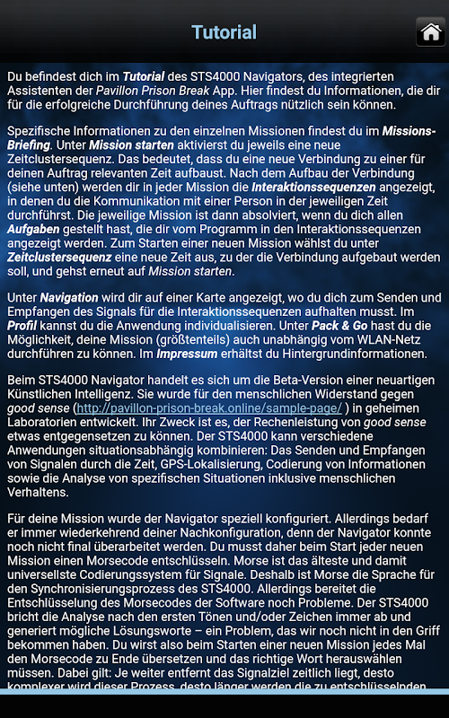 Pavilion Prison Break is a location-based game that takes you into the life of the cell and court prison Hanover. Your contracting entity is Lucy from the year 2168. Lucy is a resistance fighter against the totalitarian rule of good sense, an artificial intelligence that takes advantage of people's fears, to turn them to operate without a will cyborgs. For their struggle Lucy needs your help: Use the pavilion Prison Break app as your assistant in search of an old escape tunnel, which once brought forth from the historic cell and court prison Hanover and could mean the salvation of Lucy and the resistance in 2168!