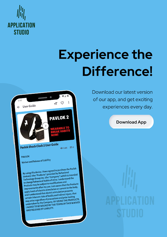 Download the Pavlok Shock Clock Guide app to explore all the essential details about your Pavlok Shock Clock. With easy navigation, this app gives you quick access to the information you're looking for.