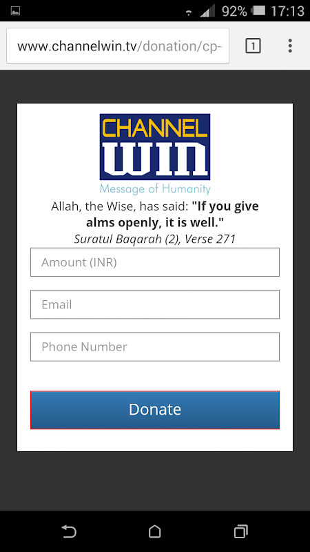 Channel WIN has taken the initative to develop the application for the users to donate there charity amount via this application. Fund of rupees 5 to 100,000 is accepted via this application. all the receipts of the donation will be sent to you via email.