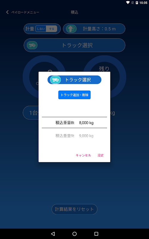 ※ 4 When using "PayloadMonitor" alone, you can add / delete up to 50 maximum loading capacity in addition to the following maximum loading capacity: 4 types in advance. Since it is a simple function that does not correspond to individual dump truck designation by an arbitrary method or detailed management of the loading history by the cloud, if you wish there, separately set "TRUCKVISION" Procedure and payment are required.