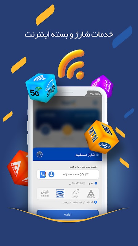 • Buying an internet package: the possibility of buying an internet package for all phone operators (First Mobile, Irancell, Irancell TDLTE, Rightel, Shuttle)