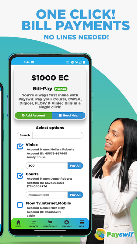 Pay all major bills (Digicel, Flow, CWSA, Vinlec, CWSA, Courts)