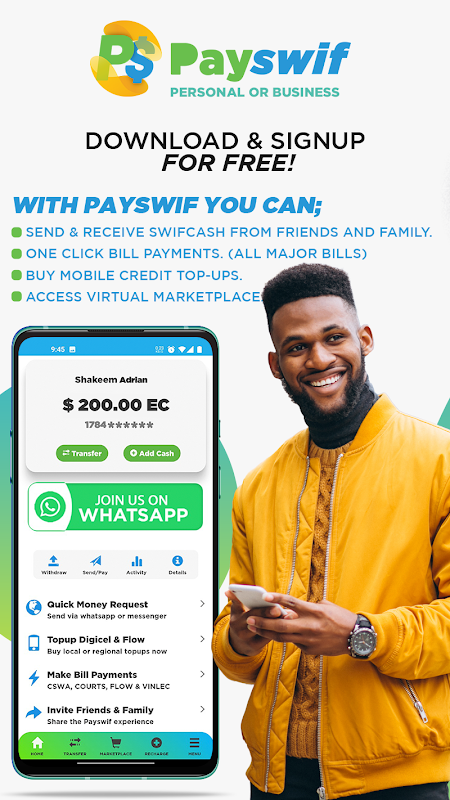 Pay your bills, Send and Receive swifcash, Buy Topups, Buy & Sell Marketplace!
