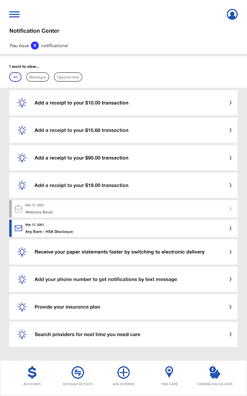 • Ability to add healthcare expenses for future payment
