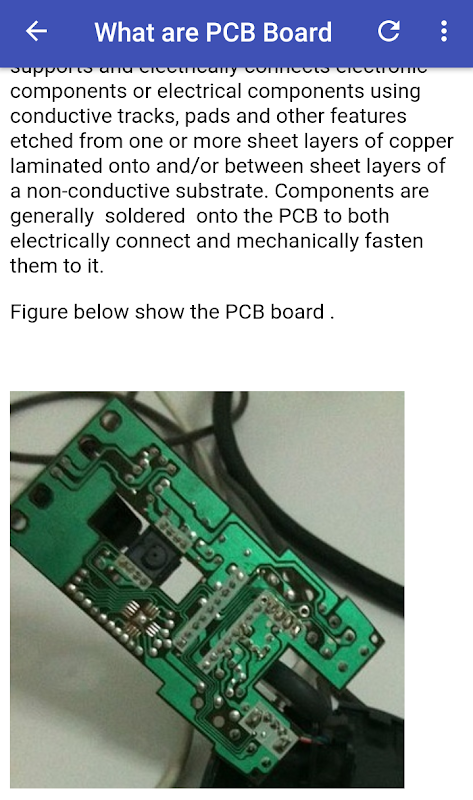 In this application you will learn many information about PCB repair such as how to identify broken PCB and also how to fix it.Not just that , you also can learn how to solder and desolder the basic electronic components on the PCB Boards.This apps can be use offline ( can be use without internet connection) .