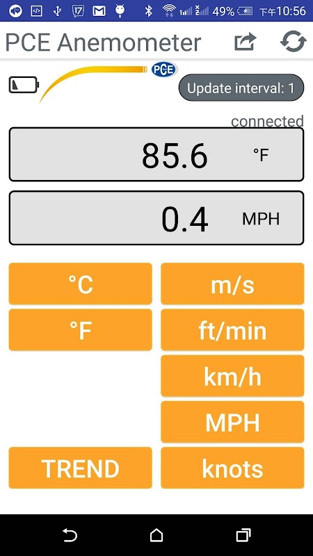 PCE Anemometer is a real-time measurement app of wind speed and temperature