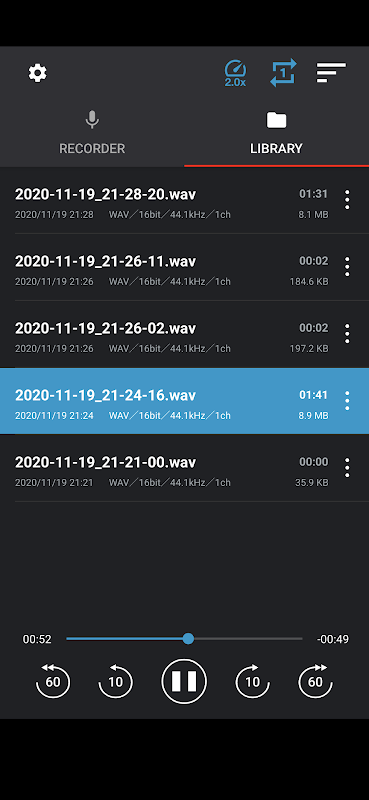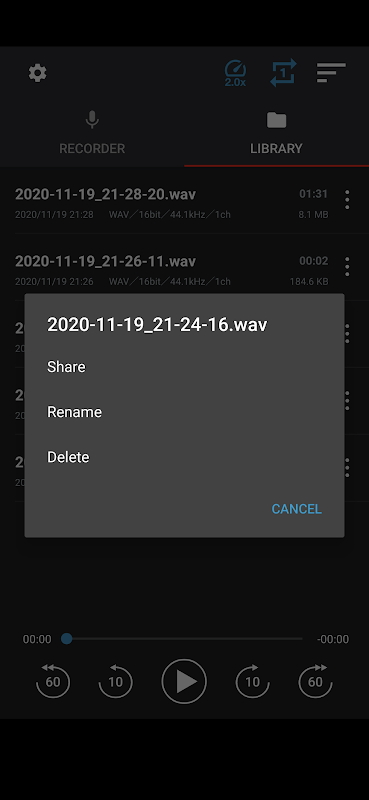 - Change of playback speed (0.5x, 0.75x, 1.25x, 1.5x, 2.0x)