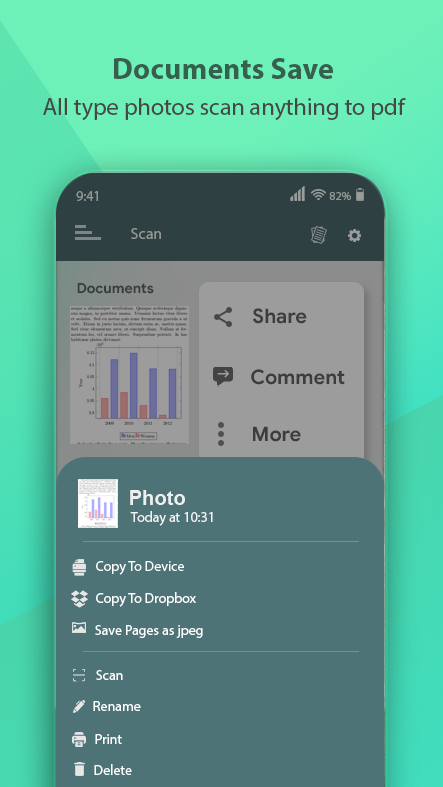 Easily scan & convert all kinds of documents to PDF format in a simple tap - receipts, invoices, notes, documents, photos, business cards, certificates, whiteboards, etc. The scan results can be printed out instantly via Cloud Print.