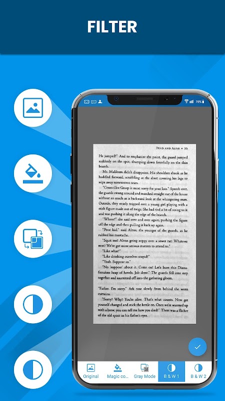 📋Excellent Post-scan Filters - This camera scanner app offers professional post-scan filters.