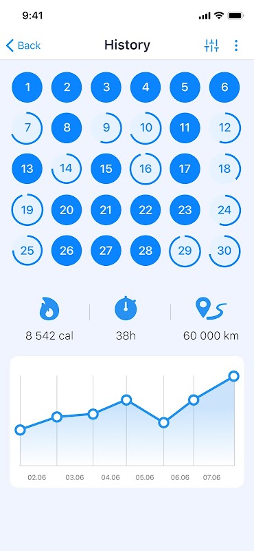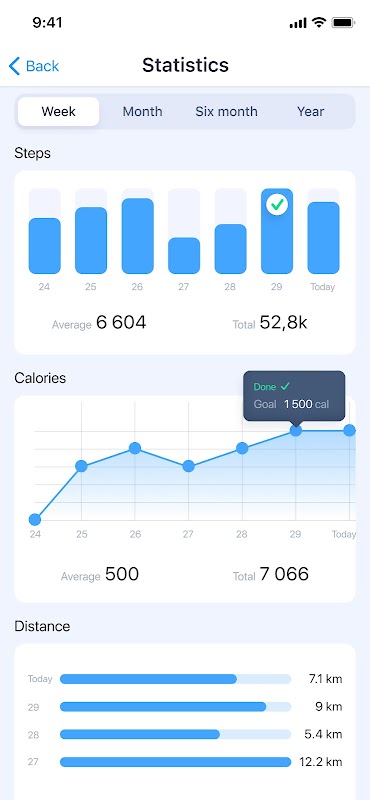 3 words are enough to describe our steps tracker design: Laconic, Stylish, Minimalistic. Eye-catching interface of the steps app will help you tune into an activity with pleasure.