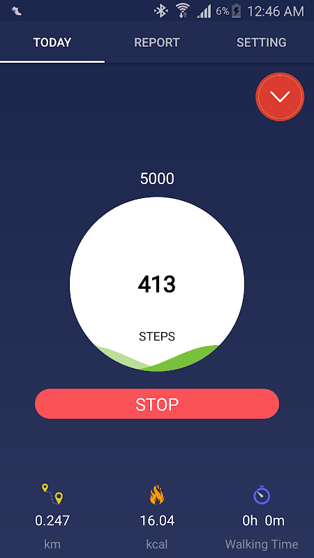 Count your steps in background to provide you an overview about your walked steps, distance and about the calories you have burned while walking.