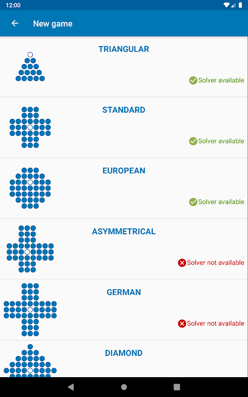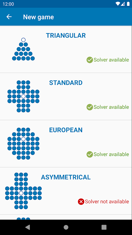 Have fun with the six famous variants playable for free in this game: triangular, standard, European, asymmetric, German and diamond.