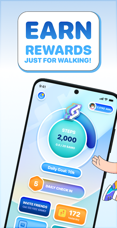 Amino Move applications that rewards you with AMO tokens for taking steps.