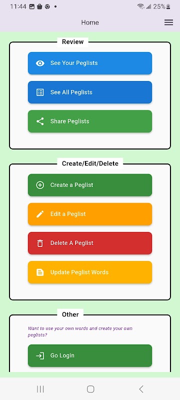 The app includes the ability to update your own words to use for your lists as well as the ability to create, edit, delete, and view your own or everyone's peglists.