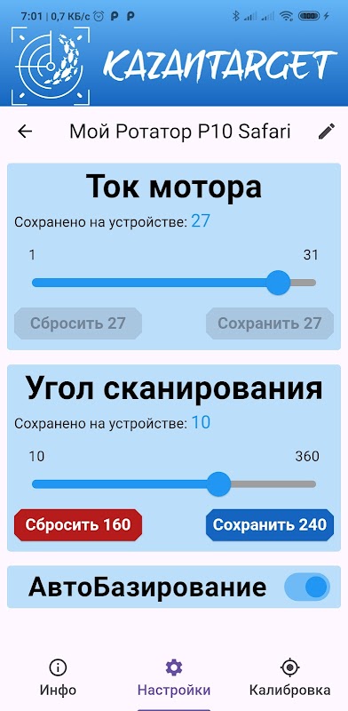 The application is designed to configure and manage rotators with Bluetooth support from KazanTarget.