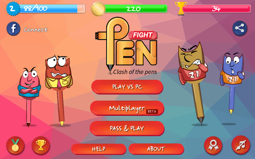 Choose a pen and begin the fight with one, two or three opponents on the tabletop. Swipe across the screen to hit the opponent’s pen, and knock it off the table before it does the same to you.