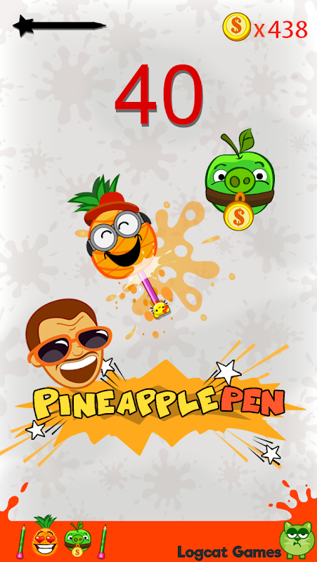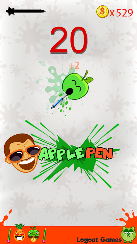 Tap to throw the pen and try to hit a pineapple or an apple to make apple pen or pineapple pen stick together. Make yourself perfect apple shooter and pineapple shooter. Hit the perfect center for two times in a row, and experience joy => Uhhhhh Pen Pineapple Apple Pen (PPAP)!
