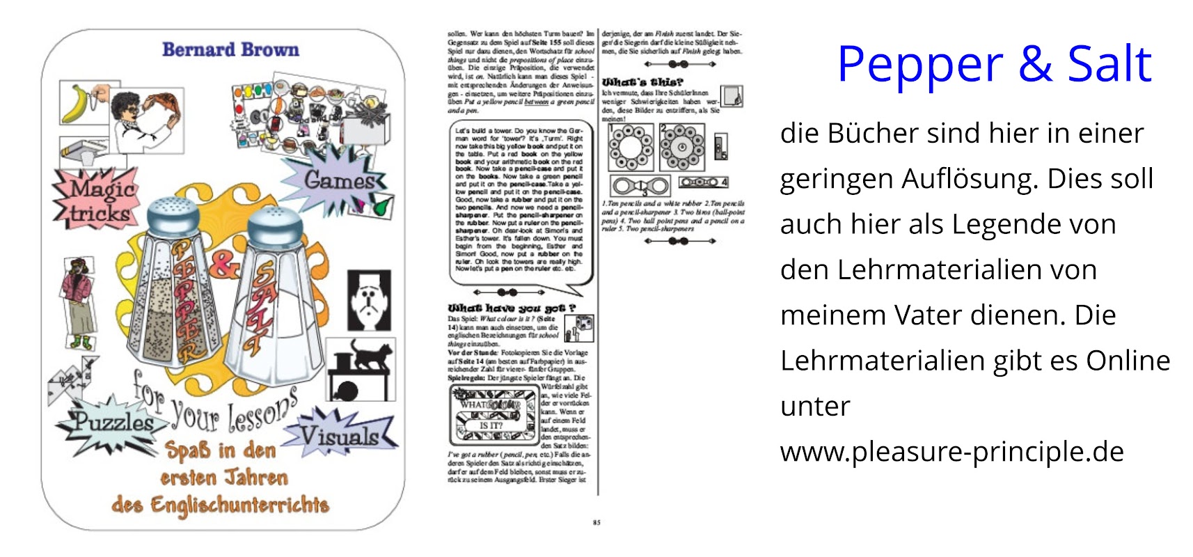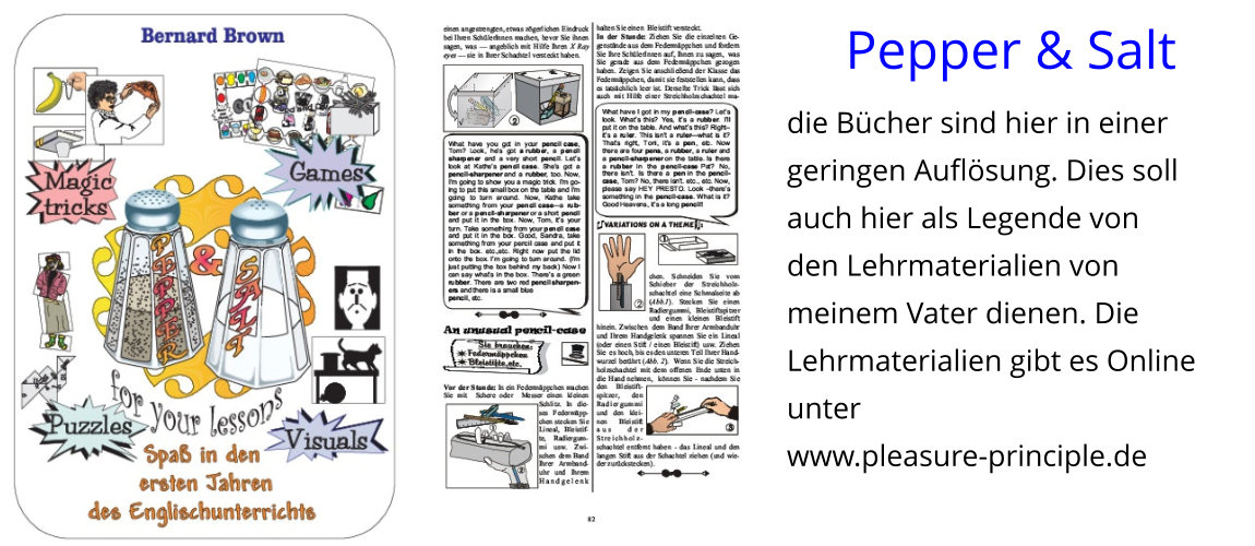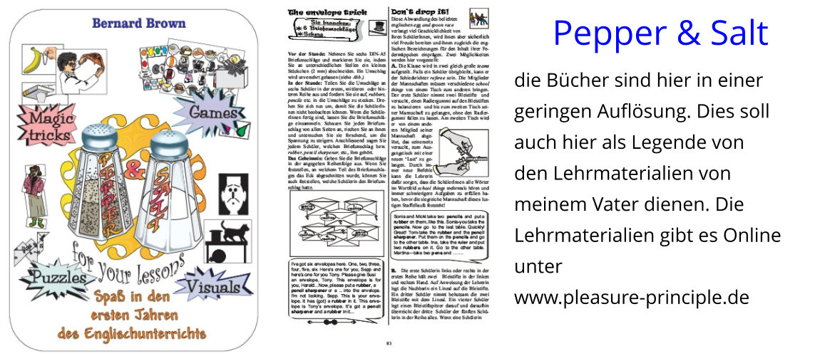 We present here the teaching materials of our sadly deceased father Bernard Brown. His works for English lessons have not died and now we want to publish them as legends in the Playstore. The books and slides are available online at www.pleasure-principle.de