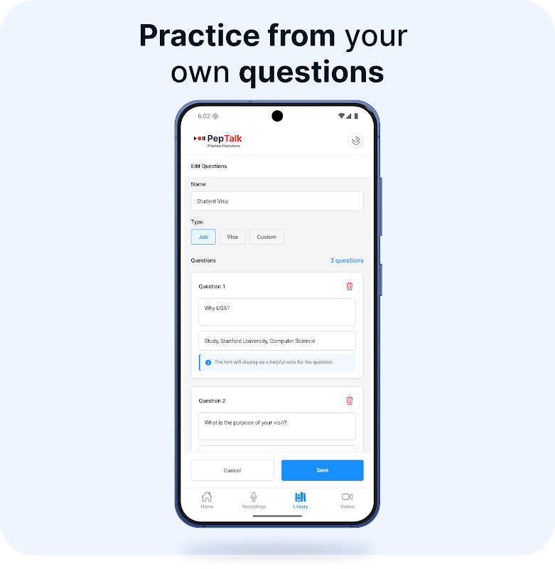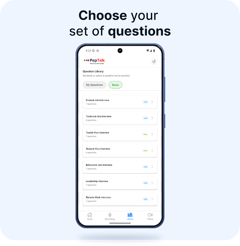 Generate Question Library: Tailor your question library to match the specific job interview you're preparing for.