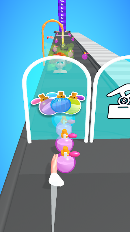 Stack perfume bottles and fill them with perfume!