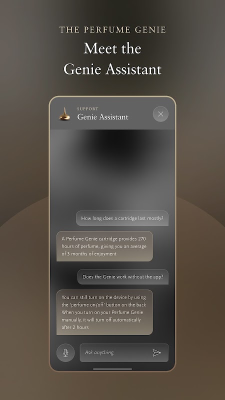 • The Genie Assistant - 24/7 available to answer all your Perfume Genie-related questions