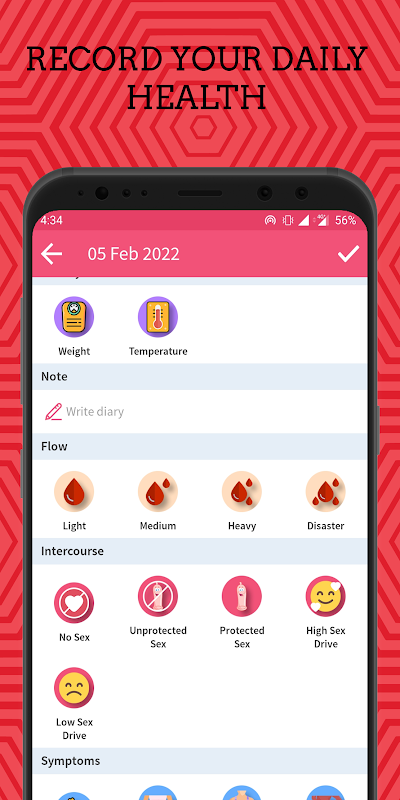 · Track symptoms, cravings, skin, pain, exercise, vitality, & more to find patterns in your cycle
