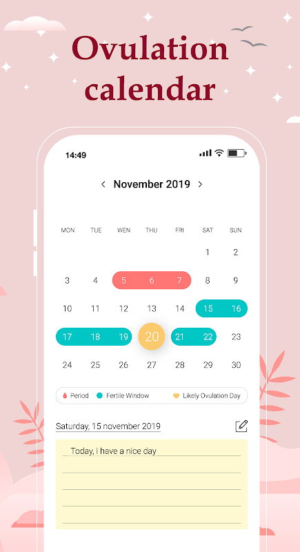 Period Tracker & Ovulation Calendar is the application to track the menstrual cycle, calculate the time of ovulation and predict the possibility of pregnancy for women.