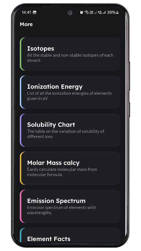 Chemistry is wonderful, so I have included more chemistry-related information in this periodic table application.