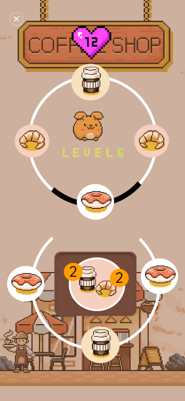 Step into a beautifully designed pixel-art coffee shop and put your puzzle-solving skills to the test! Your goal is simple but challenging: rotate the ingredient circles, drag the correct pieces, and match the customer orders in the bottom circle. Can you serve every order correctly before time runs out?
