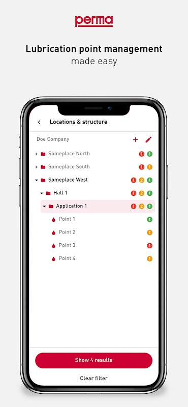 perma CONNECT provides you with a comprehensive overview of all your lubrication points. Our intelligent application ensures seamless access to critical lubrication point data at any time and from any location – even while on the go. By using perma CONNECT, you contribute significantly to improving safety within your organization, allowing for remote monitoring and control of perma lubrication systems in hard-to-reach or dangerous areas with ease and efficiency.