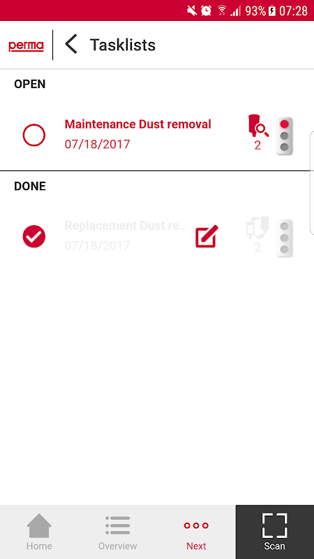Task lists simplify the processing of maintenance / exchange work on-site. Transfer these to the perma MLP APP of employees in charge and they can systematically work on these tasks.