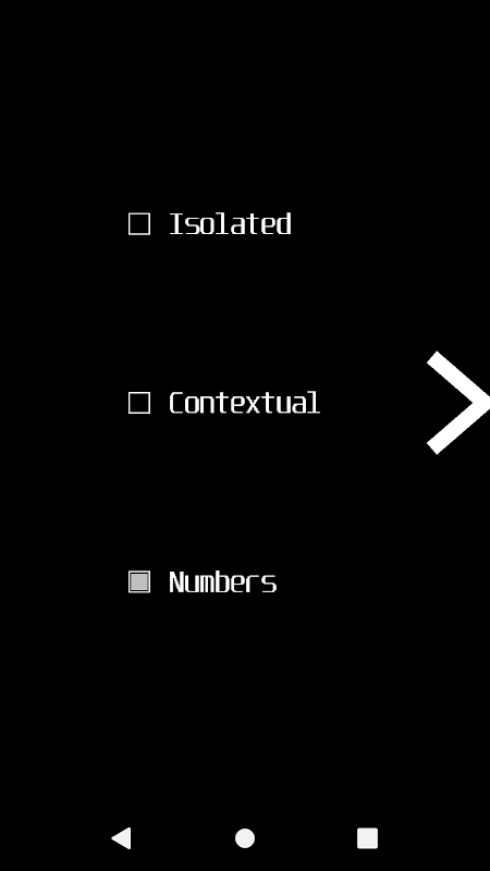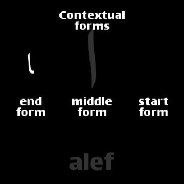 Letters, contextual forms and numbers.
