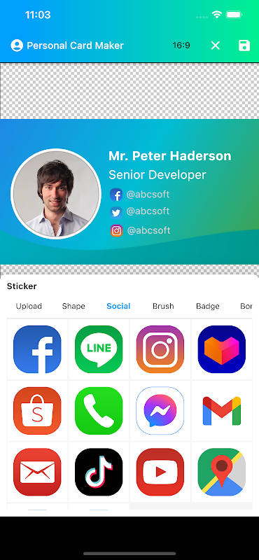 - Add 200+ Stickers, social, shape, brush, badge, upload your sticker