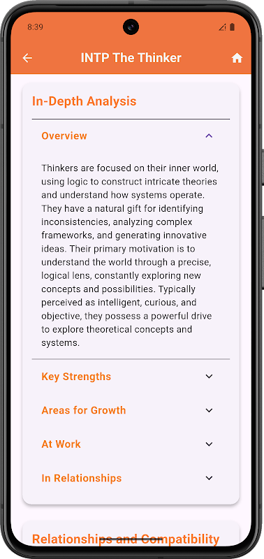 Disclaimer: Please note that this application is an independently developed framework and is intended for educational and entertainment purposes only. Our assessment is inspired by established psychological theories but is not the Myers-Briggs Type Indicator (MBTI™) test. This app is not affiliated with, nor endorsed by, the owners of any related trademarks.