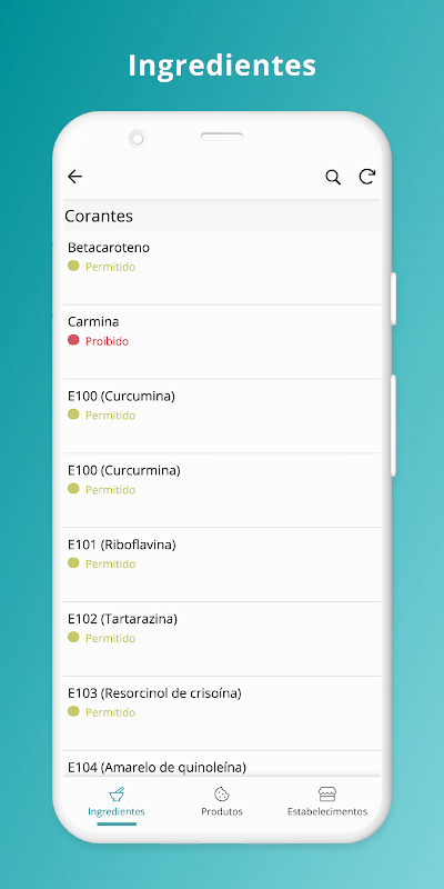 The consumer can browse the different categories in the areas of ingredients, products and establishments and can also use the search function.